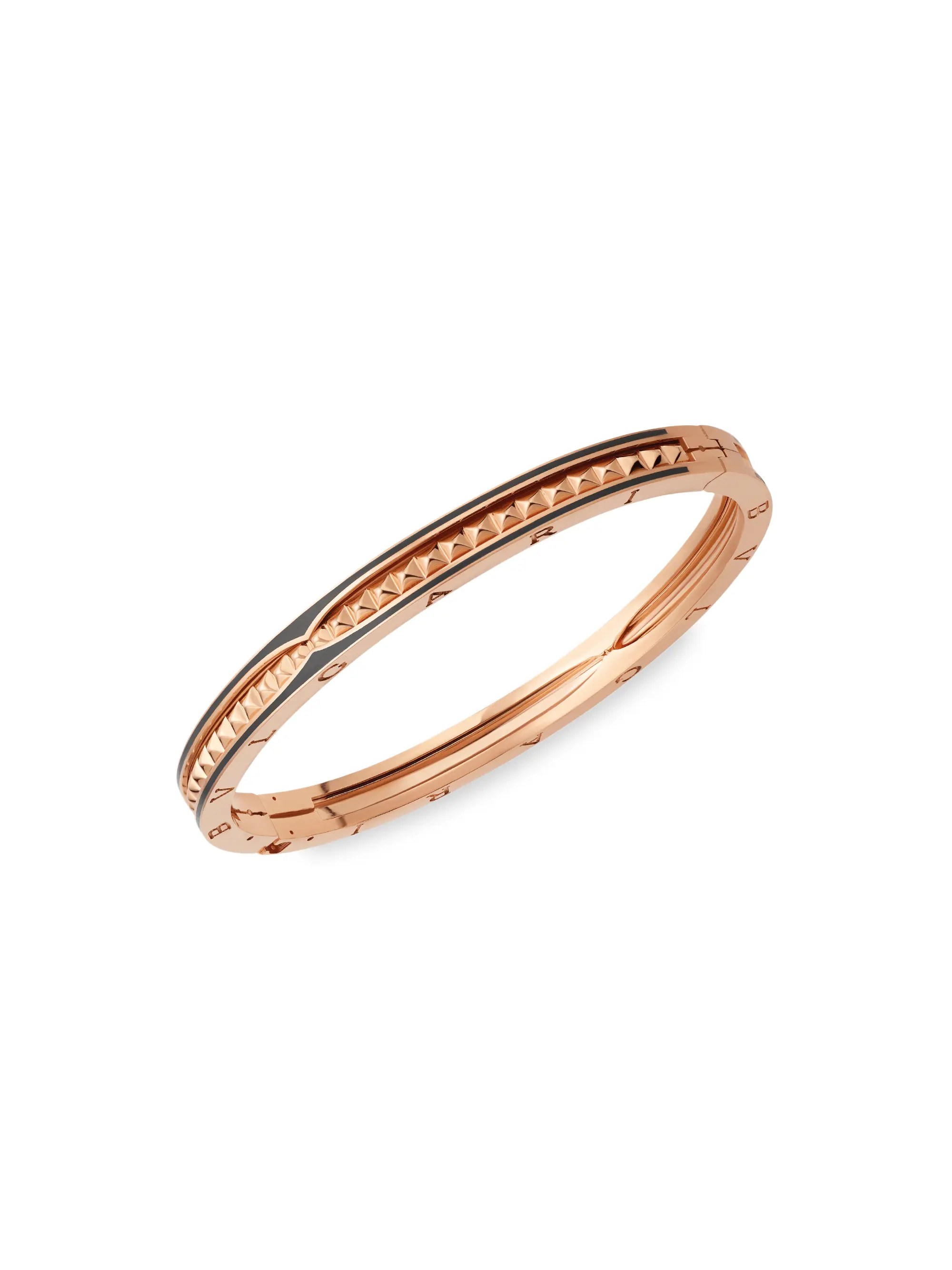 B.zero1 rock bracelet in 18 kt rose gold with black ceramic. B.zero1 rock bracelet in 18 kt rose gold with black ceramic. Discover b.zero1 bracelet 357584 and read more about bvlgari's collection on the official website. Rose gold bracelets from bvlgari is a timeless jewelry selection of mesmerizing beauty from italy's most renowned craftsmen.